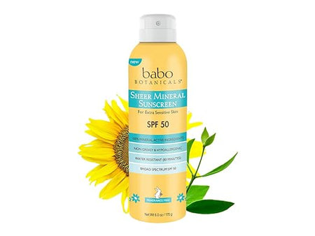 Babo Botanicals Mineral Sunscreen Spray SPF 50 - Natural Zinc Oxide & Titanium Dioxide